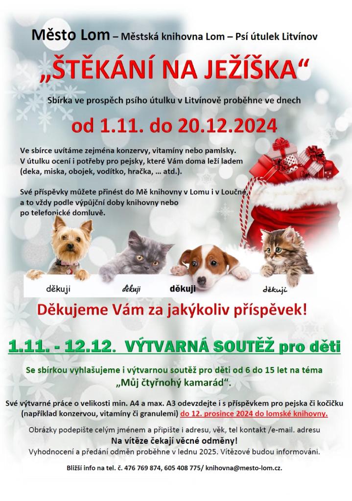 Své výtvarné práce o velikosti min. A4 a max. A3 odevzdejte i s příspěvkem (například konzervou, vitamíny či granulemi) do 12. prosince 2024 do lomské knihovny.
