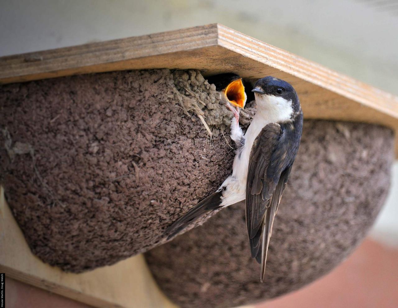 Řešení: Instalujeme umělá hnízda, která se buď kotví, nebo napevno přilepují stavebním vysokotažným lepidlem (a jsou tedy absolutně stabilní). V některých případech je možné již spadlé hnízdo zpevnit „košíčkem“ z králičího pletiva a znovu ho připevnit na původní místo, kde rodiče mláďata dokrmí. Problému můžeme předcházet tak, že tam, kde jiřičky lepí hnízda, použijeme fasádní barvu s větší zrnitostí, ideálně 2–3 mm, přičemž rozdíl v zrnitosti oproti dalším partiím fasády je prakticky nezřetelný. Případně instalujeme destičku z nasákavého materiálu (dřevěnou, betonovou apod.), která slouží jako hnízdní podložka.